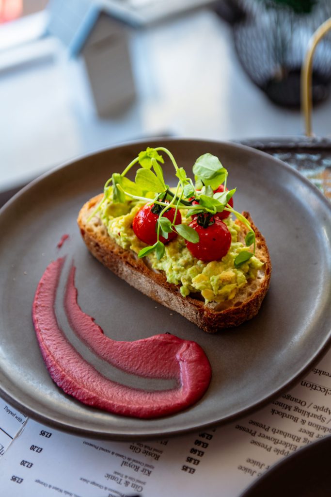 Confit Tomatoes, Toasted Sourdough, Lemon and Chilli Flakes, Beetroot Hummus and Pea Shoots (Why not add Bacon £2.90, Salmon £3.95, Halloumi £2.90, Poached Eggs £1.90)